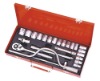 socket wrench set (tool set , socket set )1/2" 25pcs sokcet wrench set 18 pc 6pt socket (9,10,11,12,13,14,15,16,17,18,19,20,21,22,24,27,30,32)mm 1 pcratchet wrench 1 pcuniversal joint 2 pcextension bar : 5" & 10" 1 pc sliding T-bar 10" 1 pcspeed handle 1 pcmetal box